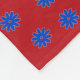Padrão de flor azul sobre fundo vermelho.