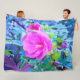 Cobertor De Velo Flor de Hibisco Rosa Elegante com Folhagem de Aqua