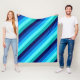 Um cobertor de velo de tamanho médio que apresenta um padrão legal de design de faixas diagonais em azul marinho, azul cobalto, azul-céu, talhe de menta gelada e tartaruga-clara.