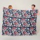 Cobertor De Velo Flores brancas e vermelhas em azul.