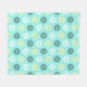 Cobertor de impressão floral aquático. As flores são feitas de círculos de cavalos marinhos e são aqua amarela, branca e escura sobre fundo aqua claro.