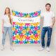 Adicione um toque brilhante ao seu quarto com este cobertor personalizado. Ele tem um estilo retrô com flores hippie margaridas sobrepostas em amarelo brilhante, azul e magenta cor-de-rosa. Os gráficos desenhados à mão são projetados para imitar a impressão em estilo risógrafo clássico. Este cobertor está pronto para ser personalizado com um nome ou outro texto personalizado.