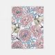 Flores de pénia desenhada à mão e pássaros-tetas em cor rosa e azul pastel. Padrão de vetor sem costura feito no Illustrator.