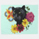 Um retrato de gato Jaguar Negro com azulejo mexicano colorido e flores.