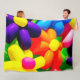 Um monte de balões infláveis de brinquedos moldados como flores de diferentes cores. Férias felizes! Seja feliz! cobertor de velo.
