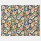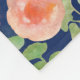 Aquarela colorida e anemónias laranja pastéis, papoulas, rosas e outras flores da primavera com folhas verde pálido num pitoresco fundo azul escuro.