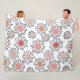 Este cobertor de velo grande tem um médio de flores moderno século design feito de círculos em tons de rosa, amora e bege e linhas pretas.