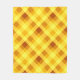 Um cobertor de velo de tamanho médio com um padrão de xadrez brilhante e alegre em amarelo-gema de ovo.