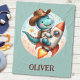 Este adorável cobertor de velo personalizado apresenta um dinossauro T-Rex bonito, equipado para ação de rodeio intergaláctico. Um cowboy clássico que se senta sobre seu capacete astronauta, enquanto o T-Rex dirige um foguete espacial como um bronco de balanço. Personalize este cobertor com o nome do seu filho para uma manutenção única que irá despertar a sua imaginação e alimentar os seus sonhos de exploração espacial.