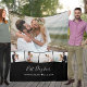 Cobertura de colagem de fotos de casamento com texto personalizado e faixa de fotos ziguezague. O modelo está pronto para que você adicione cinco fotos - a foto principal será usada como fundo e as 4 fotos restantes serão colocadas em uma faixa de fotos ziguezague na parte inferior. Este design tem um fundo preto, belos quadros de fotos em preto e elegante tipografia branca.