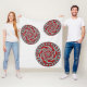 Este design de círculo concêntrico contém camadas de padrões geométricos que se assemelham a engrenagens que você pode encontrar em máquinas modernas ou até alienígenas, em tons de vermelho e cinza.