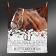 Um cobertor elegante de guardas de cavalo com um fundo moderno de coração de mármore, uma foto tesourada do seu querido cavalo, ferraduras de cavalo, o ditado "na memória amorosa", o seu nome de animais de estimação e datas.