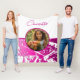 Cobertor De Velo Foto personalizada fuchsia e branca com nome