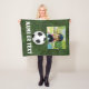 Adicione o nome e a foto do seu galinha a este cobertor de estádio de velo confortável! presente personalizado excelente para o desportista, dentro ou fora do campo. Apoie o seu jogador de liga com este nome personalizado incrível e um cobertor de futebol numero com bola sobre o fundo e grama verde.