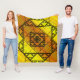 Três estilos de fractais desenhados à mão, incluindo triângulos Sierpinski, juntas aplonianas, e um design quadrado com temas semelhantes, compõem as camadas desta mandala geométrica, sobrepostas num gradiente amarelo e laranja brilhantes.