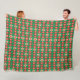 Front image shows a vibrant geometric pattern with red, green, and white diamonds creating a festive, lively feel. Back image is plain white, smooth.