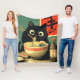 Cobertor De Velo Funny Black Cat Eating Ramen