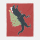 There is something undeniably fun about mixing the Jurassic era with December traditions. This illustration features a funny looking dinosaur who is taking his festive duties very seriously. Donning a classic red Santa hat, this little guy is trekking through the winter vibes carrying a massive Christmas tree on his back.
