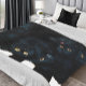 Um grupo de felinos pretos agrupados em uma grande poça em um andar branco e preto