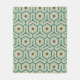 Geometric pattern with interlocking hexagons in green and teal, featuring brown hexagons in the center. The design is symmetrical and retro-inspired.