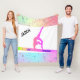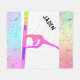 GIMNASTICS FLEECE BLANKET COM GYMNAST NO BALANCE BEAM E NOME PERSONALIZADO.