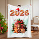 Bring cozy holiday sweetness into your home with this charming gingerbread-themed Christmas throw blanket. The design features the year 2026 styled as cute gingerbread cookies, with a playful Santa hat resting on the zero. Below, a festive gift box decorated with cookies, pine branches, and holiday accents adds warmth and holiday cheer. This blanket creates an inviting Christmas atmosphere and pairs perfectly with festive pillows, seasonal decor, and cozy evenings by the tree. A wonderful choice for Christmas home decor, winter gifting, and celebrating the upcoming holiday season in a joyful and deliciously festive way. Soft, stylish, and full of holiday charm, it is ideal for adding a whimsical seasonal touch to your living room, bedroom, or family holiday photos.