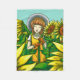 Uma garota num campo de girassóis numa tarde quente de verão.