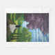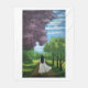 Girl in White Dress A girl in a white dress walking down a path lined with green and purple trees