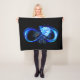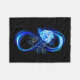Luminous infinity symbol with glowing, beautiful, lushly blooming rose made of blue flames on black background.