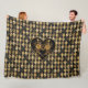 Um design brilhante e romântico para transformar um cobertor comum em um Namorados que apresenta um coração elegante com rosas ouros em um dramático padrão de harlequin preto e ouro.