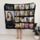 A graduação negra mantém um cobertor com 17 fotos da colagem do formando durante os anos escolares e seu nome em um roteiro branco-na moda. Adicione suas legendas personalizadas em cada foto.