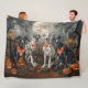 Libere o espírito assustador com esta design sombria do Dia das Bruxas apresentando um bando de cachorros sob um céu escuro e iluminado, cercado por morcegos voadores e abóboras brilhantes. Perfeito para aqueles que amam um toque de diversão terrível com seus amigos peludos!