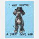 um ótimo cachorrinho dane vestindo um chapéu preto com o trocadilho engraçado "Eu era normal há um grande dane". Perfeito para amantes de cães e grandes fãs de dinamarquês.
