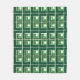 Esse cobertor de velo médio tem um design geométrico feito de Ls em tons de verde dispostos em diferentes direções se repetindo na design.