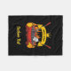 Churrasco sobre carvão inflamável, faixa de rolagem com texto personalizado sobre garfo e espátula. Cor de fundo personalizada. Texto inferior personalizado.