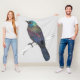 Um lápis colorido de um raquete comum. Você pode ver o pássaro de seu dorso brilhante, onde você pode ver suas lindas cores iridescentes.