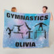 Gymnastics Blanket - Has a beautiful colorful background and 4 female gymnast silhouettes doing a variety of gymnastics skills and events! Can be personalized with the name of your gymnast or your gymnastics club name!
