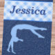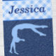 Gymnastics Girl Light Blue Xadrez com brilho azul escuro combinado com ginasta azul em pó fazendo um giro nas costas. Esta design personalizada terminou com o nome dela!