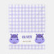 Este adorável cobertor de velo personalizado das crianças apresenta um rosto de hippo roxo, fofo e amigável com um padrão de gingham. Perfeito para pequenos amantes de os animais!