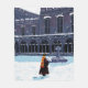 Confira essa ilustração sonhadora de Harry com sua coruja Hedwig no pátio de Hogwarts!