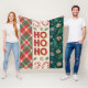 Ho Ho Ho Christmas Blanket Este cobertor festivo é perfeito para adicionar alguma alegria de férias à sua casa. Ele apresenta a frase "HO HO HO" em tipografia ousada e cursiva com um padrão de distribuição de cana doce. O fundo é um padrão de xadrez com listras vermelhas e verdes. Este cobertor certamente trará um sorriso ao seu rosto durante toda a temporada.