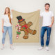 Uma ilustração de um homem de pão de gengibre dançante feliz com um chapéu e uma cana doce. Durante as comemorações de Natal, o pão de gengibre e a cana-de-açúcar estão sempre presentes. Fazer pão de gengibre é uma maneira de se conectar com a família e crianças fazeres felizes.