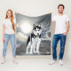 Este lindo cobertor de velo de fofinho mostra meu desenho de um Husky Siberiano de olhos brancos e pretos, contra um fundo siberiano e o céu de inverno. Um presente adorável para um amante de Rouco se abater.