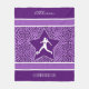 Cobertura roxa selvagem do velo do futebol com um impressão roxo da chita no fundo. Uma silhueta branca do jogador de futebol da menina está em uma estrela roxa escura na parte dianteira. Adicione seus próprios nome e número antes que você peça!