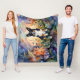 This image features a black-headed tri-colored corgi amidst a vibrant field of flowers. The artwork is rendered in a fluid alcohol ink style, creating a unique visual effect.