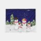 Um boneco de neve e sua família estão na neve gelado que olham as estrelas de tiro. Um coelho do bebê joga quando um pássaro vermelho se sentar no chapéu da neve de Momma e um Bluebird come algumas sementes.
