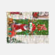 Jack Russell Dog Natal sentado do lado de fora de casa decorada com coroa de Natal, árvore de Natal é uma ideia perfeita de presente de Natal para amantes de cachorros.