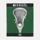 Um cobertor de lacrosse criativo com design de lax stick-and-ball em fundo verde. Editar texto para adicionar o nome do jogador de lax e o número do grupo.