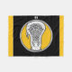 cobertor esportivo Lacrosse com design de pau de lacrosse fácil de personalizar em fundo amarelo e preto. Editar texto para adicionar o número ou o nome do jogador de lax.