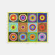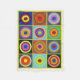Design geométrico abstrato usando círculos concêntricos e cores psicodélicas pela Rockett Graphics.